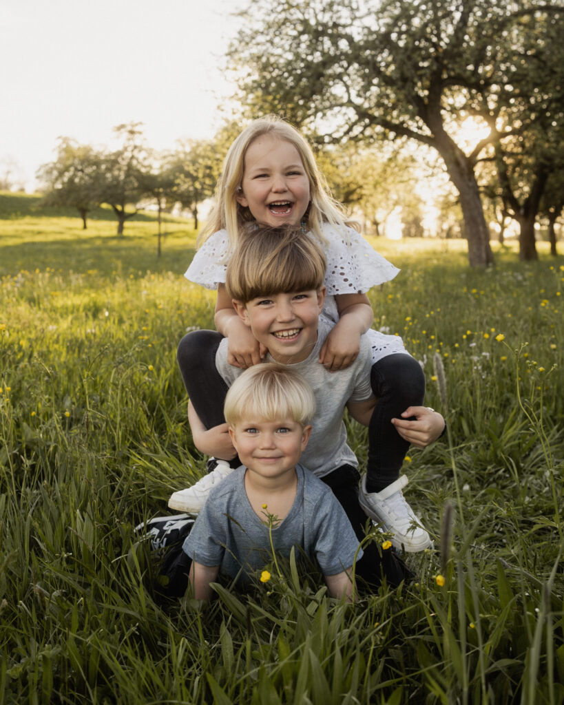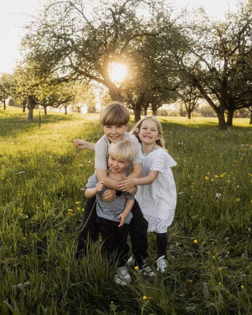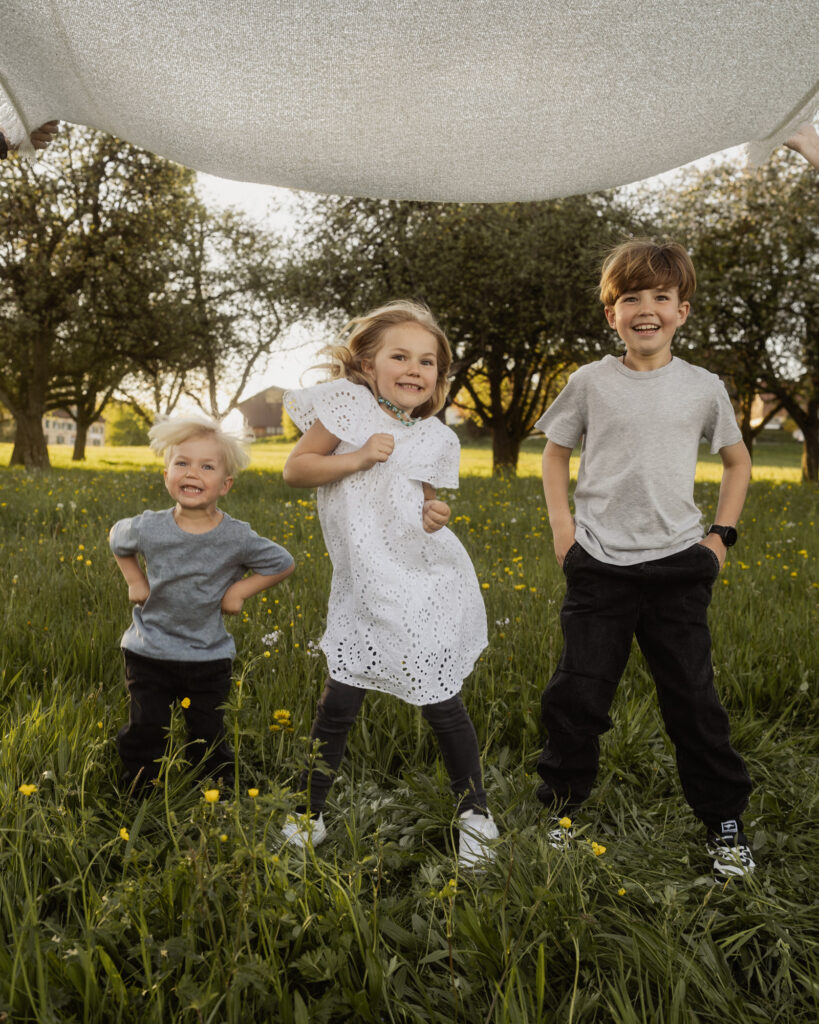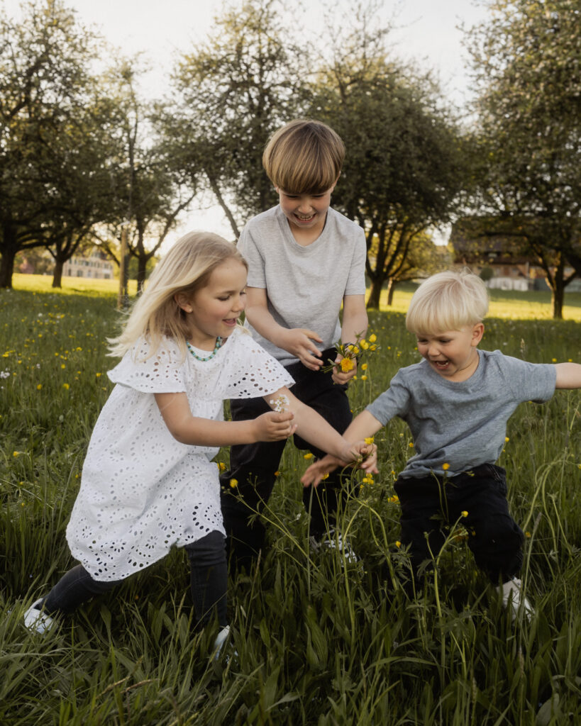Drei Kinder, unendliche Energie – und jede Menge Spass! Bei diesem Fotoshooting in der Nähe von St.Gallen war nichts gestellt, sondern alles voller Leben, Bewegung und echter Freude. Rennen, Kichern, Spielen – die schönsten Bilder entstehen genau in solchen natürlichen Momenten, voller Spontanität und Echtheit.